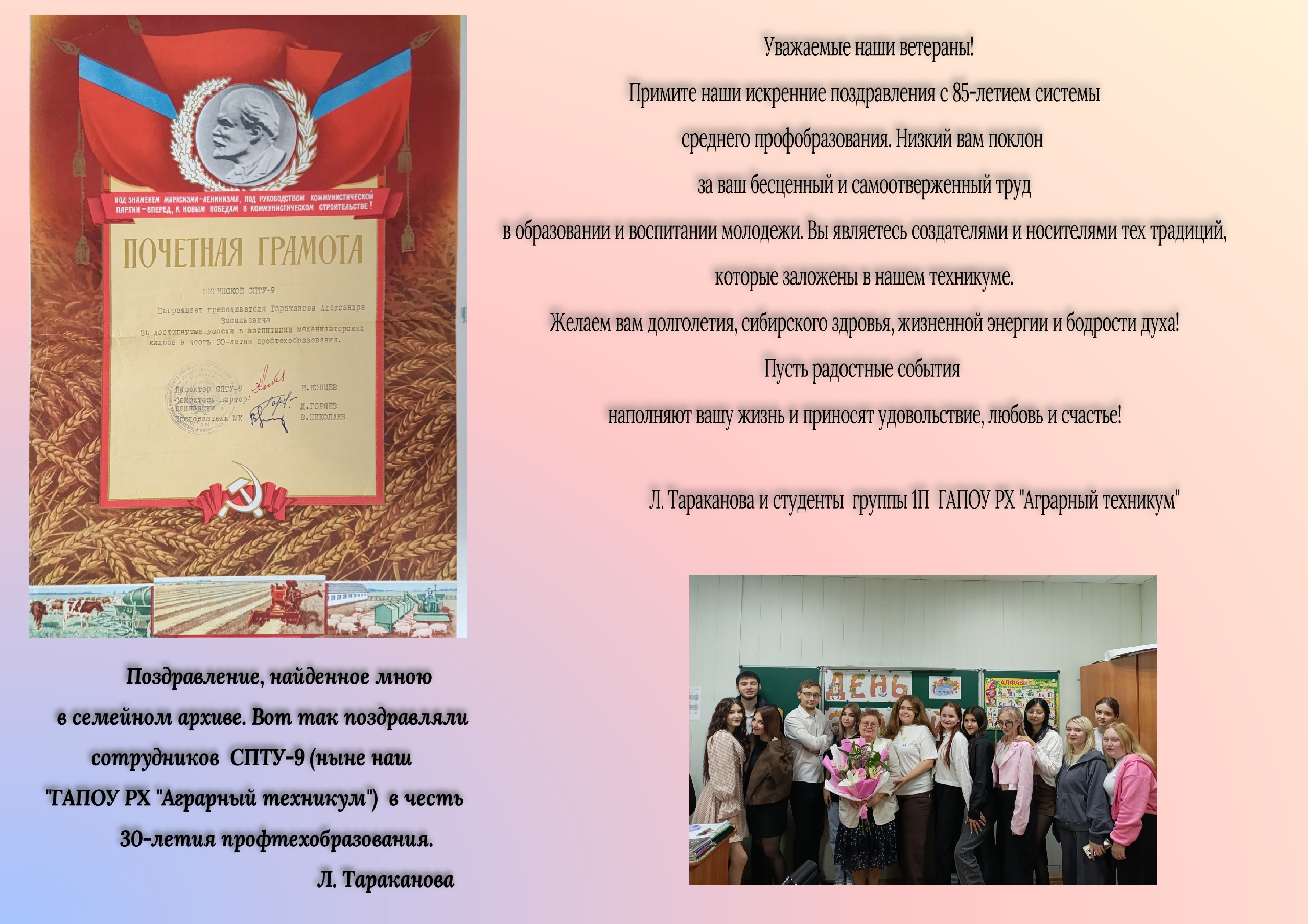 Сердечно поздравляем вас с 85-летием системы среднего профессионального образования!